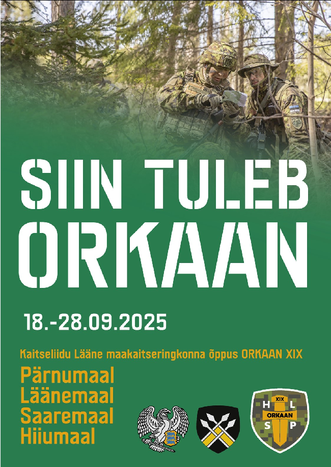 Kaitseliit annab teada, et alanud on Lääne maakaitseringkonna õppus Orkaan. Orkaan toimub Pärnumaal, Läänemaa, Saaremaal ja Hiiumaal. 18.09 formeeriti esimesed üksused ning algas nende...