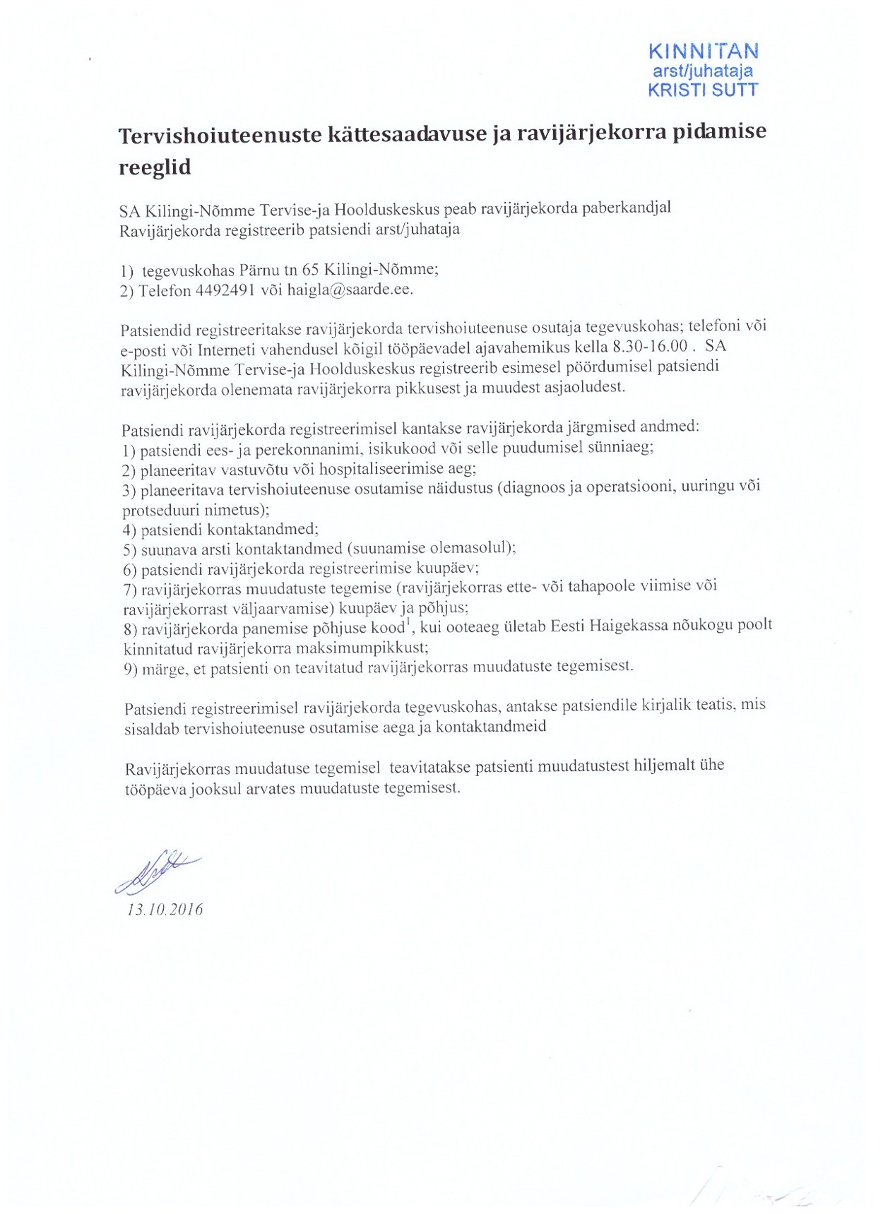 - Tervishoiuteenuste kättesaadavuse ja ravijärjekorra pidamise reeglid