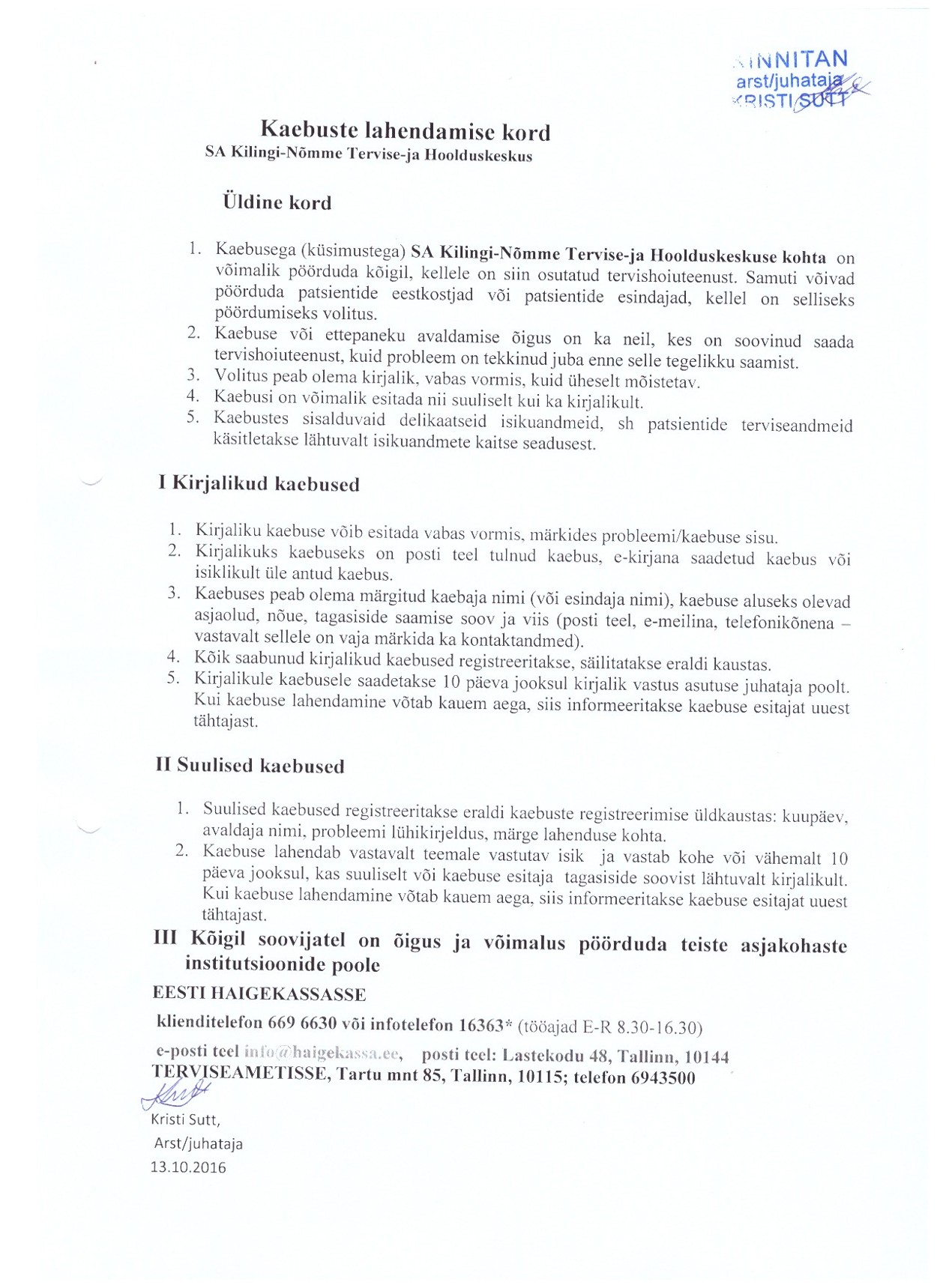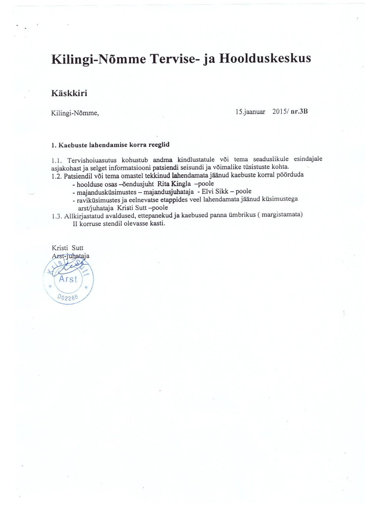 SA Kilingi-Nõmme Tervise- ja Hoolduskeskuse dokumendid