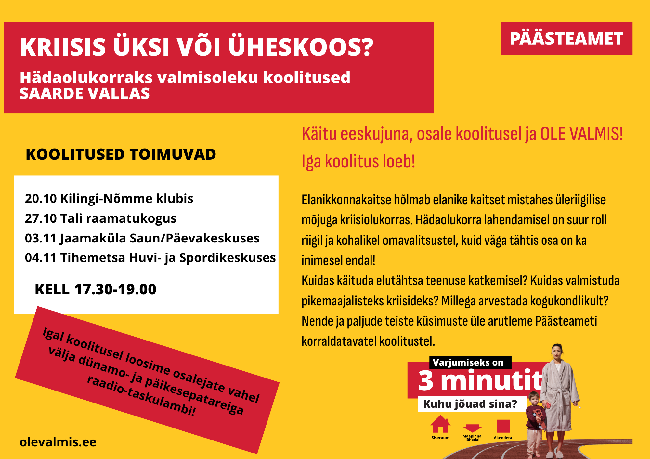 Kuidas käituda elutähtsa teenuse katkemisel? Kuidas valmistuda pikemaajalisteks kriisideks? Millega arvestada kogukondlikult?