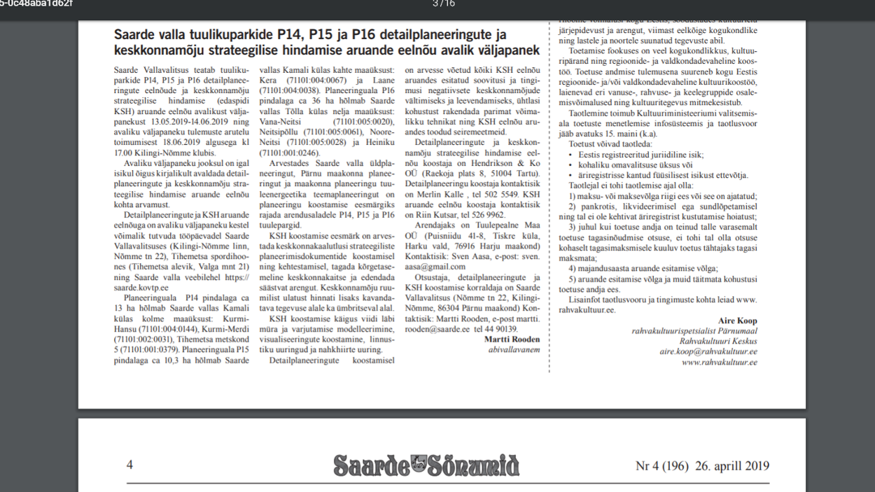 - seisukoht Saarde valla tuulikuparkide P14, P15. P16 kohta