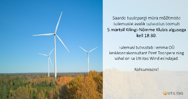 Eelmise aasta sügisesest rahvakoosolekust ajendatuna mõõtsid Terviseameti rahvatervise labori spetsialistid Saarde tuulepargi mürataset, seoses Saarde tuulepargi lähiala elanike poolt väljendatud võimaliku müraprobleemiga. Mõõtmised tellis Saarde tuulepargi omanik Tuulepealne Maa OÜ (Utilitas Wind OÜ tütarettevõte).